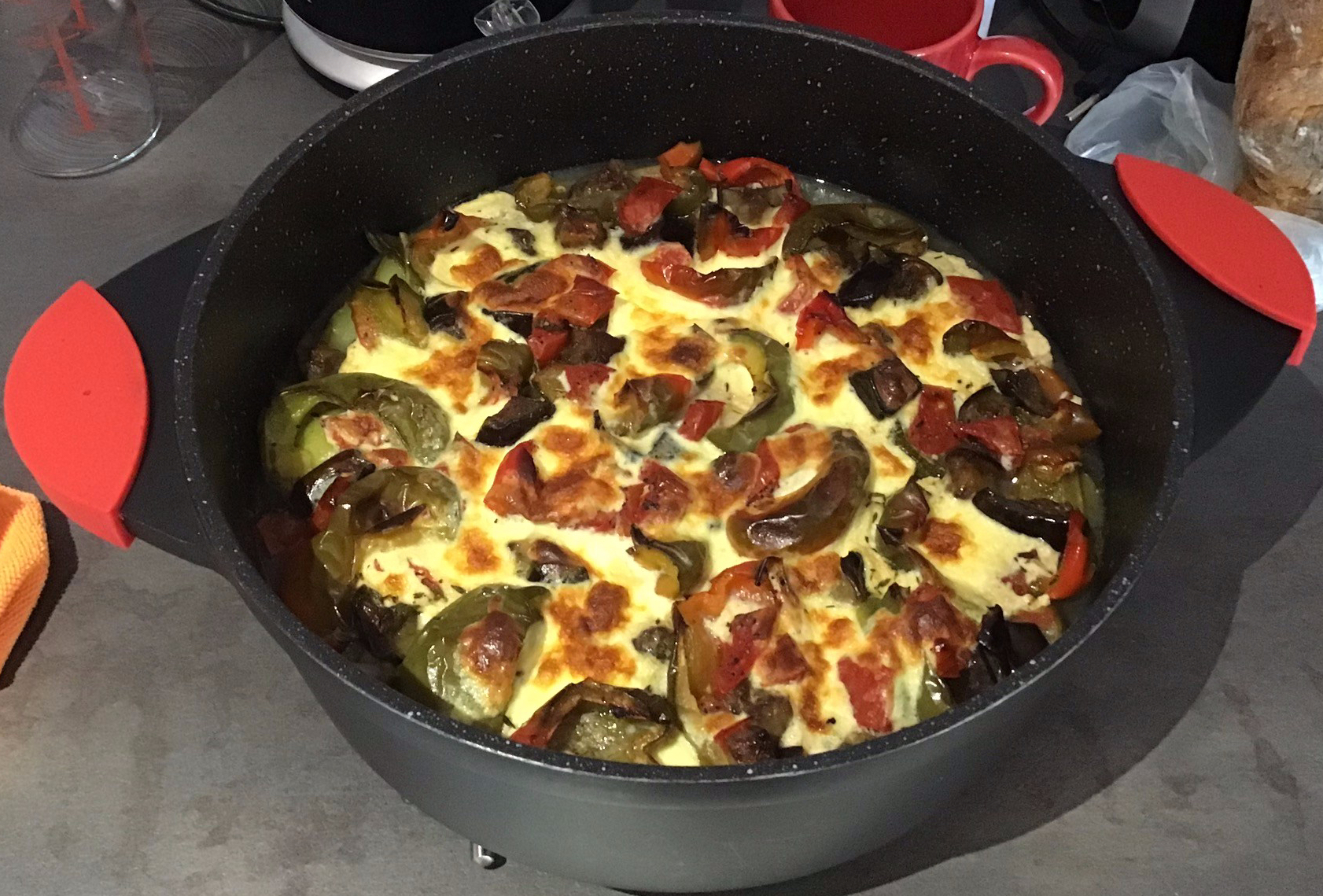 Am Mittwoch haben wir die Küche getestet. Auf dem Markt in Crozon hat ein Biobauernhof großartiges Gemüse verkauft. Der Plan für das Abendessen hat sich schnell geändert, von etwas Leichtem zu guvetch, ein Balkaneintopf. Aubergine, Zucchini, Gartenbohnen, Paprikas, Zwiebeln, Knoblauch, Tomaten. Basilikum – wir haben fast alles gekauft, was wir brauchen. Lamm und Kartoffeln waren alles, was wir woanders kaufen mussten. Das schmeckte super! Die Bioerdbeeren, auch von dem gleichen Bauernhof, waren ein krönender Abschluss des Essens.
