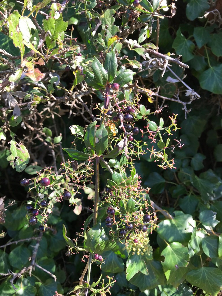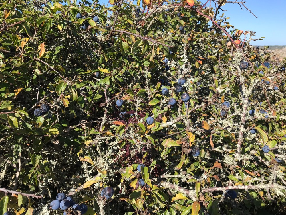 Ein wichtiger Teil jeder Wanderung sind die kostenlosen Snacks am Wegesrand: Brombeeren. Jetzt bringt M immer einen Gefrierbeutel mit, um sein Morgenmüsli mit Brombeeren zu essen. Auf einer unserer Wanderungen haben wir sehr viele gefunden – aber wir werden unsere besten Quellen nicht enthüllen! Wir haben verschiedene Beeren gesehen – blau, rot, schwarz – aber wir sind nicht sicher, ob sie essbar sind, deshalb lassen wir sie in Ruhe.