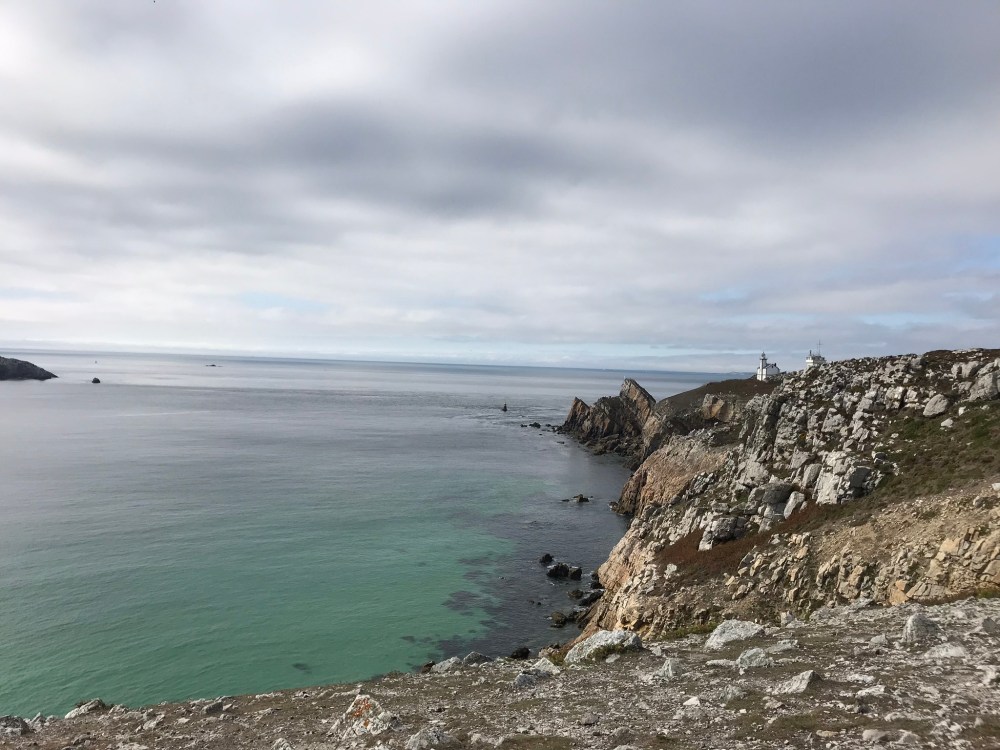 Morgens ist der Himmel nahe bei Crozon fast lückenlos grau. Die Sonne geht erst gegen 8 Uhr auf, deshalb ist die Hälfte des Morgens schon vorbei. Wenn die bretonischen Leute sagen, dass sie (wie wir) mit der Sonne aufstehen, meint es auf jeden Fall nicht, dass sie Frühaufsteher sind! Doch gegen Mittag lichtet der Himmel, die Wolken zersetzen sich, und wie durch ein Wunder taucht der blaue Himmel an den meisten Tagen auf (wenigstens im September). Nachmittags sind die Wanderungen sehr zu empfehlen. (Das hat tatsächlich nichts mit der Zeit morgens zu tun, während der wir Kaffee trinken und Sprachen lernen!)