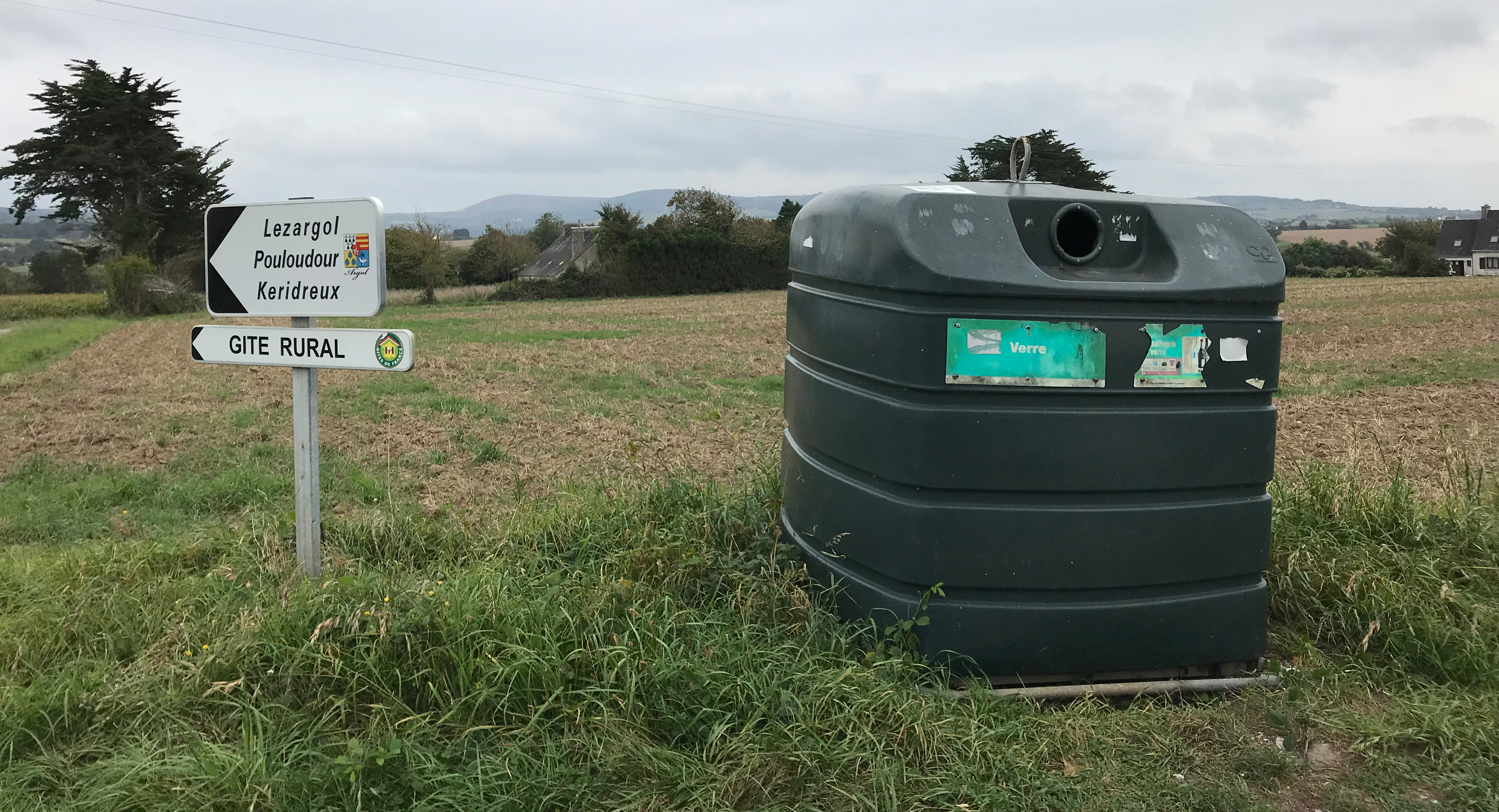 Es gibt eine eigene Tonne für Glas, die man an der Straße suchen muss. Sie sind selbstverständlich groß (alle diesen Weinflaschen!), deshalb sie sind einfach auszumachen.