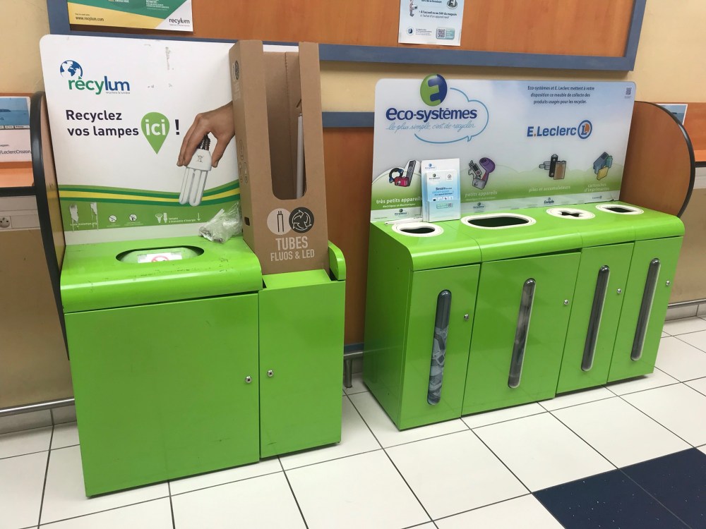 Der hiesige Supermarkt hat Container, um die vielen Müllsorte, die wir zuhause wegwerfen, zu sortieren.